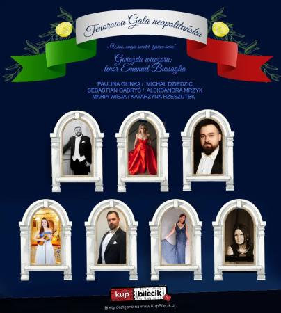 "Tenorowa Gala Neapolitańska" - najpiękniejszy koncert z okazji Dnia Matki magia świateł, tysiące świec i w dobrej cenie lampka wina jak we Włoszech. Gwiazda wieczoru popularny w całej Europie włoski tenor Emanuel Bussaglia. Wspaniali artyści, największe przeboje operetkowe z operetek: Zemsta Nietoperza, Księżniczka Czardasza, Hrabina Marica, Wesoła Wdówka. Tenorzy zaśpiewają najpiękniejsze pieśni neapolitańskie: O sole mio, Non ti scordar di me, Torna Surriento, Santa Lucia, Funiculi Funicula, Mamma, Matinata.